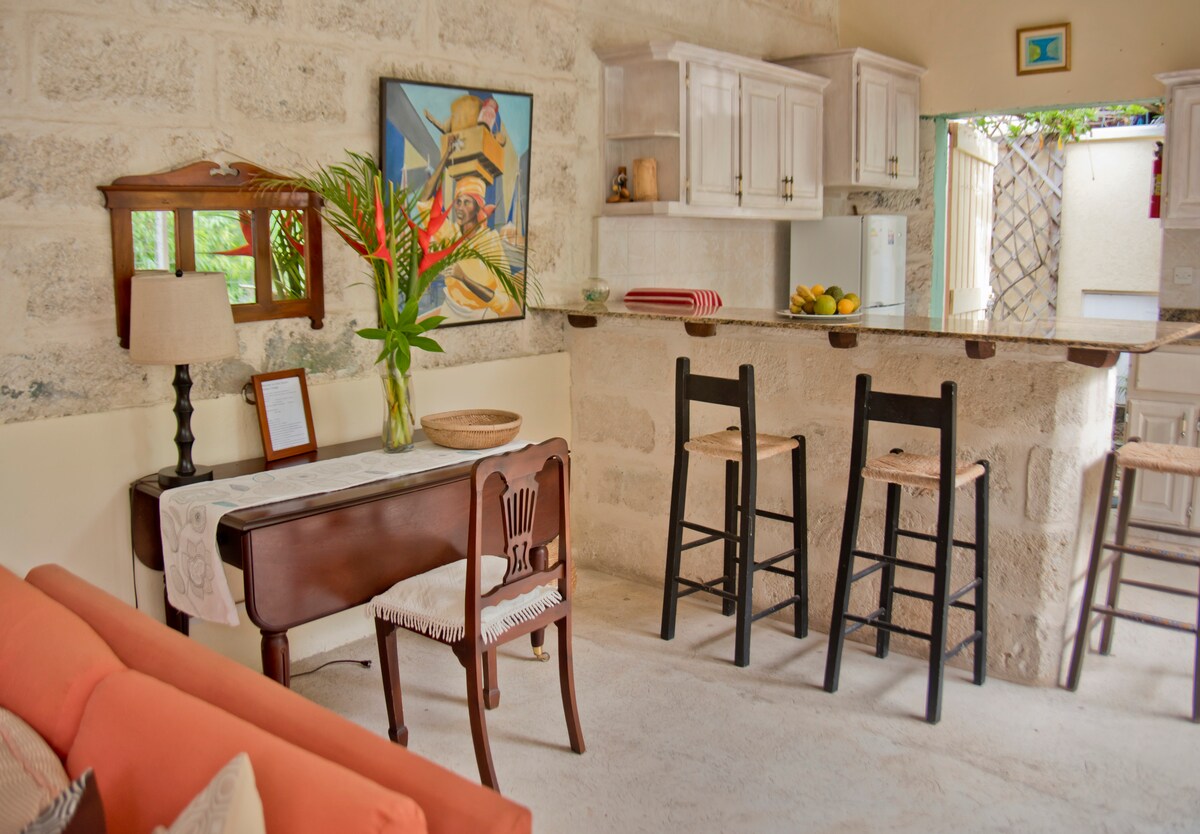 Nestled in a garden setting, Large living space with out door patio & lawn with private parking. Kitchenette, laundry facilities and free Wi-Fi. 10 minutes walk to beach & watersports. Overlooking the famous West Coast of Barbados close to restaurants, nightlife and shopping.