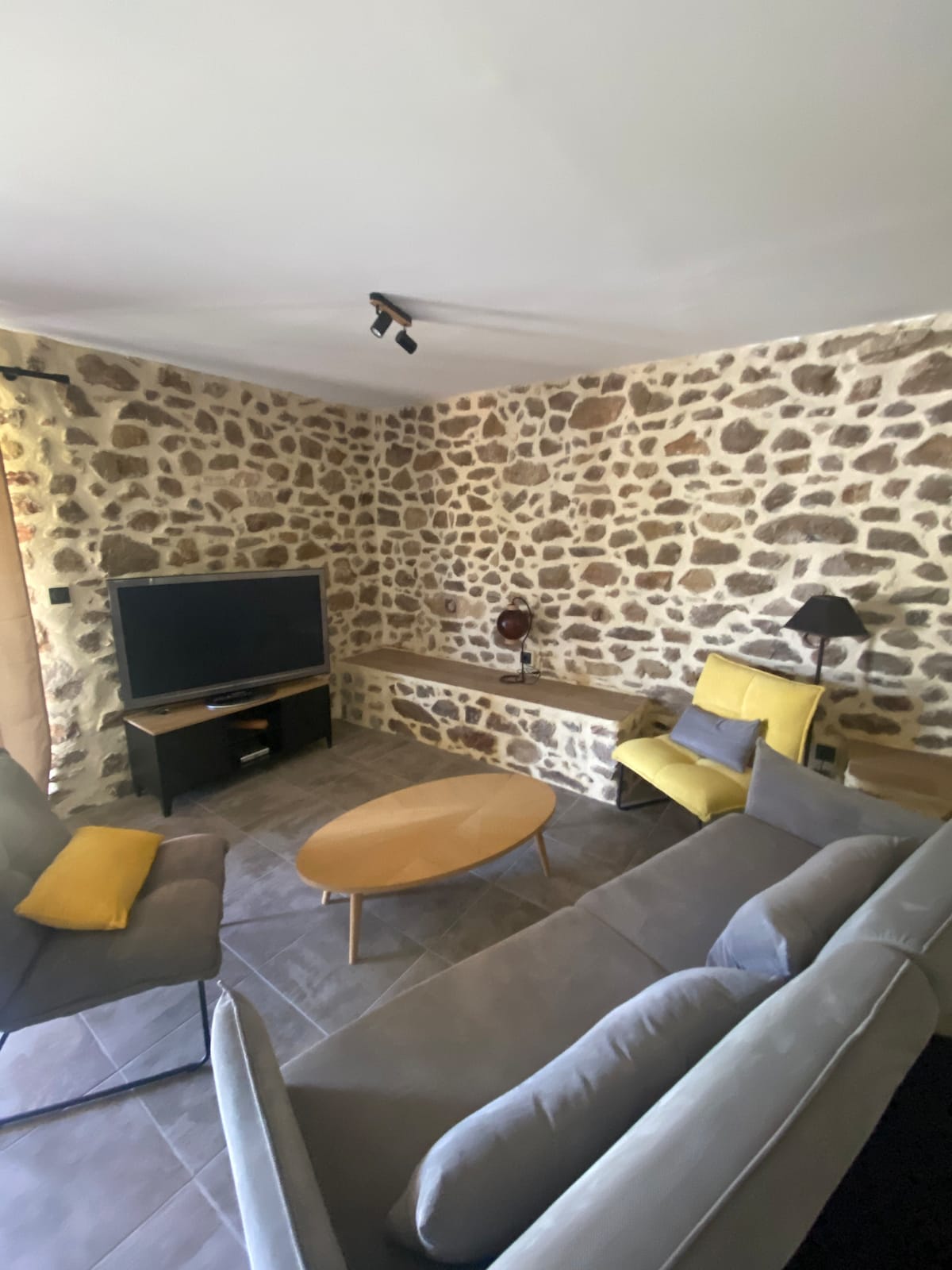 Atypical accommodation at the foot of the Tanargue. Old barn fully restored and perched on a hillside surrounded by chestnut trees. Be charmed by a quiet stay of nature, with a river for swimming a 5-minute walk away. The accommodation is accessible only on foot by a rocky and steep hiking trail. The house is on 2 levels and can accommodate 4 persons. Bed and bath linen is provided. You have a terrace with a plancha