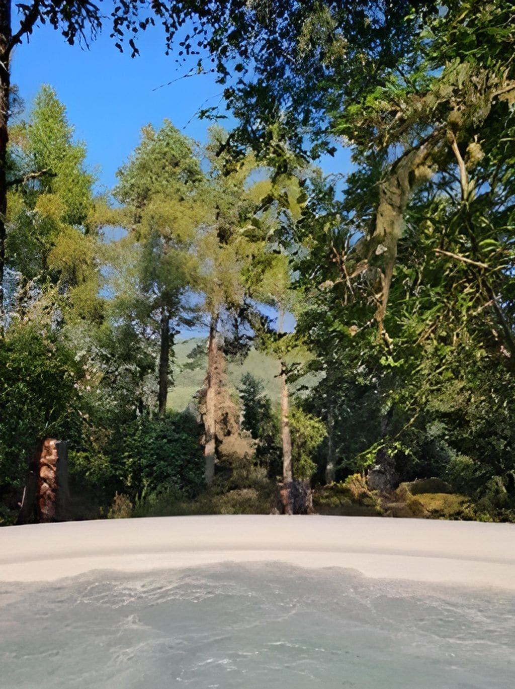 Wood cabin with hot tub surrounded by nature