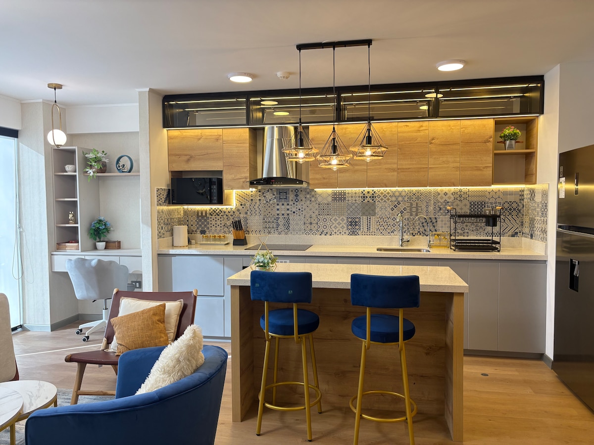 Enjoy a stylish experience at this centrally-located place. A modern studio designed to offer comfort and style in a compact but fully functional space. Perfect for business travelers, couples, or those looking for a quiet getaway. It features high-speed Wi-Fi, TV streaming (Netflix prime), towels and bedding included, plus a fully-equipped kitchen with everything you need to prepare your meals. Complimentary PH filter, soap, and shampoo.