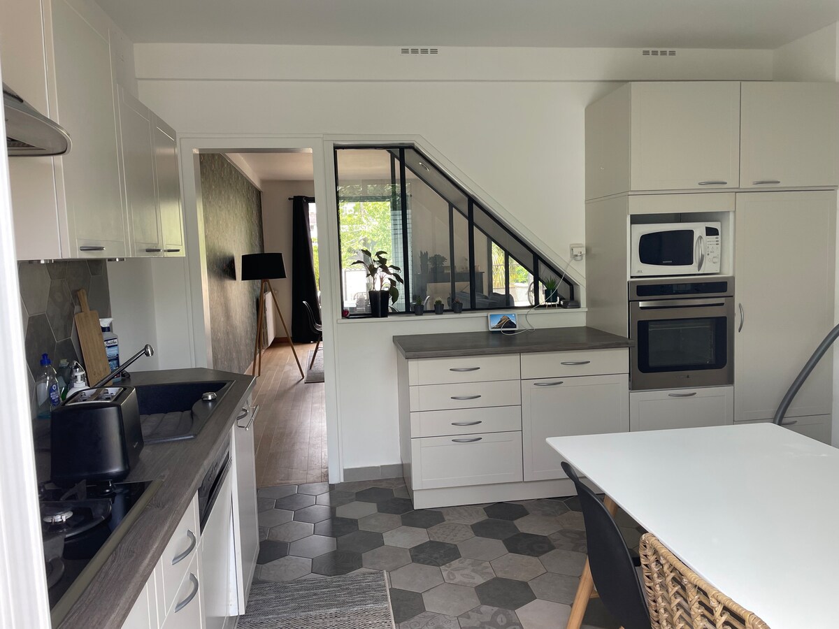 Welcome to our charming townhouse. This 100 m2 house is a stone's throw from the towpath and a 15-minute walk from downtown Laval. (Train station, shops and multiple activities) This accommodation has an equipped kitchen, living room, dining room and outdoor terrace on the ground floor. You also have a closed courtyard (ideal for storing bicycles) Upstairs, you have two double bedrooms and a single bedroom. A bathroom and a separate toilet.