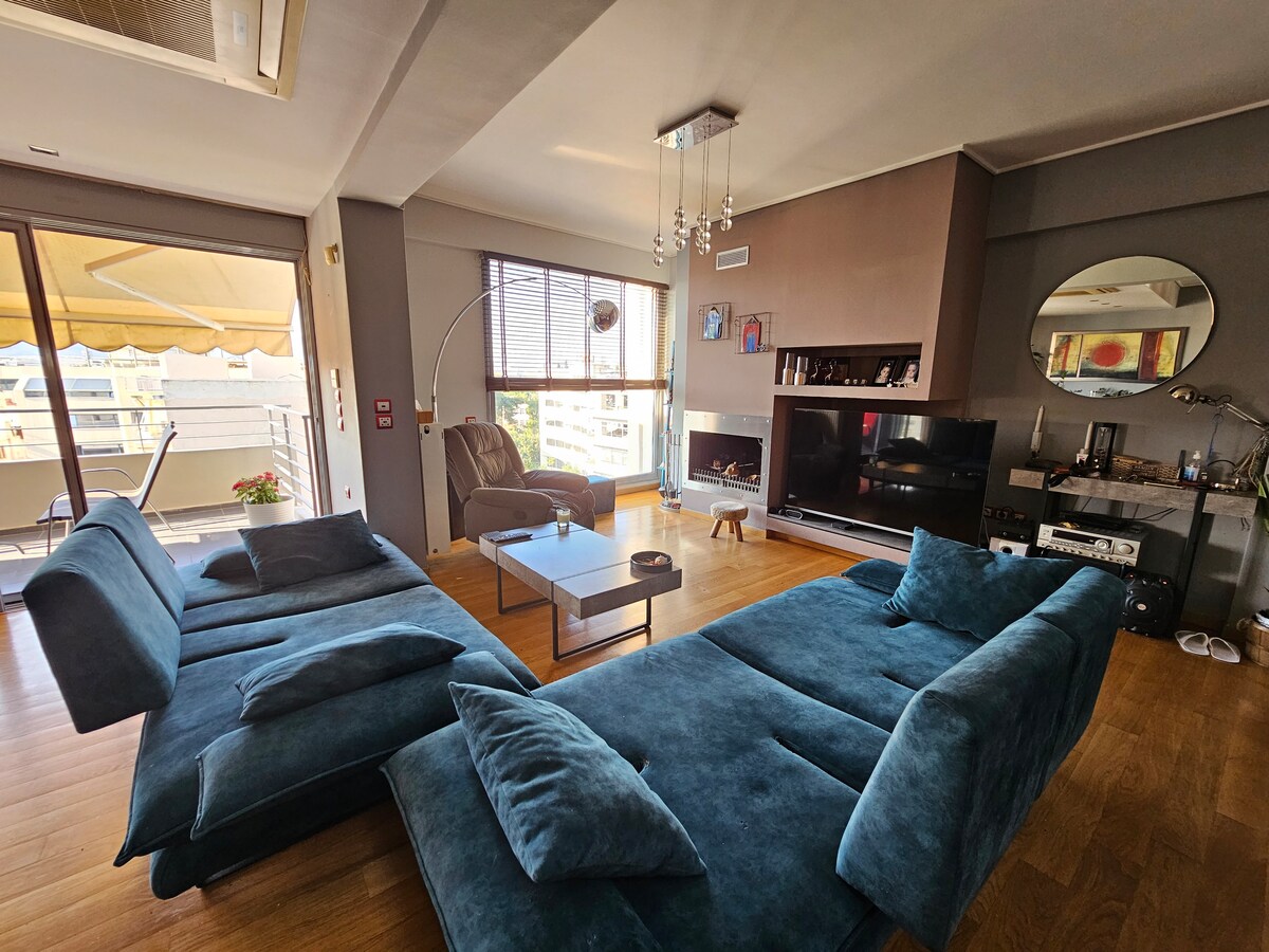 This dream place is an oasis in our city and suitable for the most beautiful moments of your life.The luxurious rooms and the fully equipped kitchen - living room - dining room will make you feel moments of relaxation. The huge terrace with barbecue &sunbeds will give you unique memories.The penthhouse is located near two Metro stations, 12' from the Acropolis and the center of Athens, next to all the shops and supermarkets.The apartment has FREE Air& Water Purifiers, Free Private Closed Parking