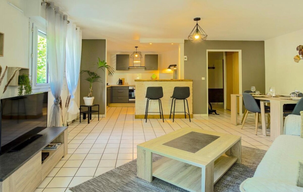 Joli T2 de 52m2 avec : - Une chambre, lit 160x200 - Un salon avec canapé lit de 140x190 - Une cuisine entièrement équipée (machine à café Senseo) - Une salle de bains (douche et sèche-cheveux) - Parking de copro + nombreuse place devant l’immeuble Arrêt de bus en face de l'immeuble avec ligne direct pour le centre ville et la gare. (5min) À pied: Centre ville à 20 min Lac à 25 min Centre Commercial Carrefour à 5min WIFI SERVIETTE & LINGE DE LIT FOURNIS. LOGEMENT NON FUMEUR ARRIVÉE AUTONOME