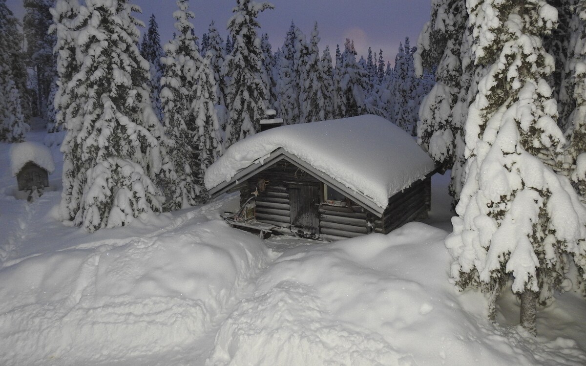 Uniquely located log cabin with hot tub and sauna. One bedroom inside the cottage and one bedroom outside in the annex. Snowmobile trail goes right past the cabin. Opportunities for hunting, skiing, fishing and hiking. There is also a small boat and a canoe. When the evening comes, it is possible to fire up the hot tub and sauna and enjoy the "wilderness spa".