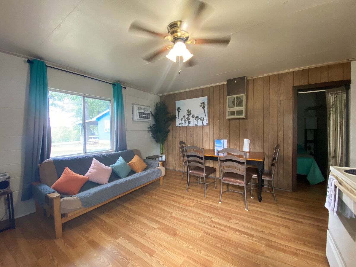 BLUE WATERS RESORT IS LOCATED IN THE BUCK CREEK AREA OF BULL SHOALS LAKE. OUR RESORT IS QUIET, SCENIC AND SECLUDED. GREAT LAKEFRONT LOCATION. ENJOY THE LAKE, BOATING AND FISHING. 1 bedroom/1 bath 1 king size or two twins Lake view Swimming Pool (Seasonal) Covered Boat Dock with Solar power Pontoon & Kayak rental Smart tv & wifi Mini general store (if in need of something, dont hesitate to ask) Easy Lake Access to Launch Pet Friendly Pavilion, BBQ Grills, Fire Pits and More!
