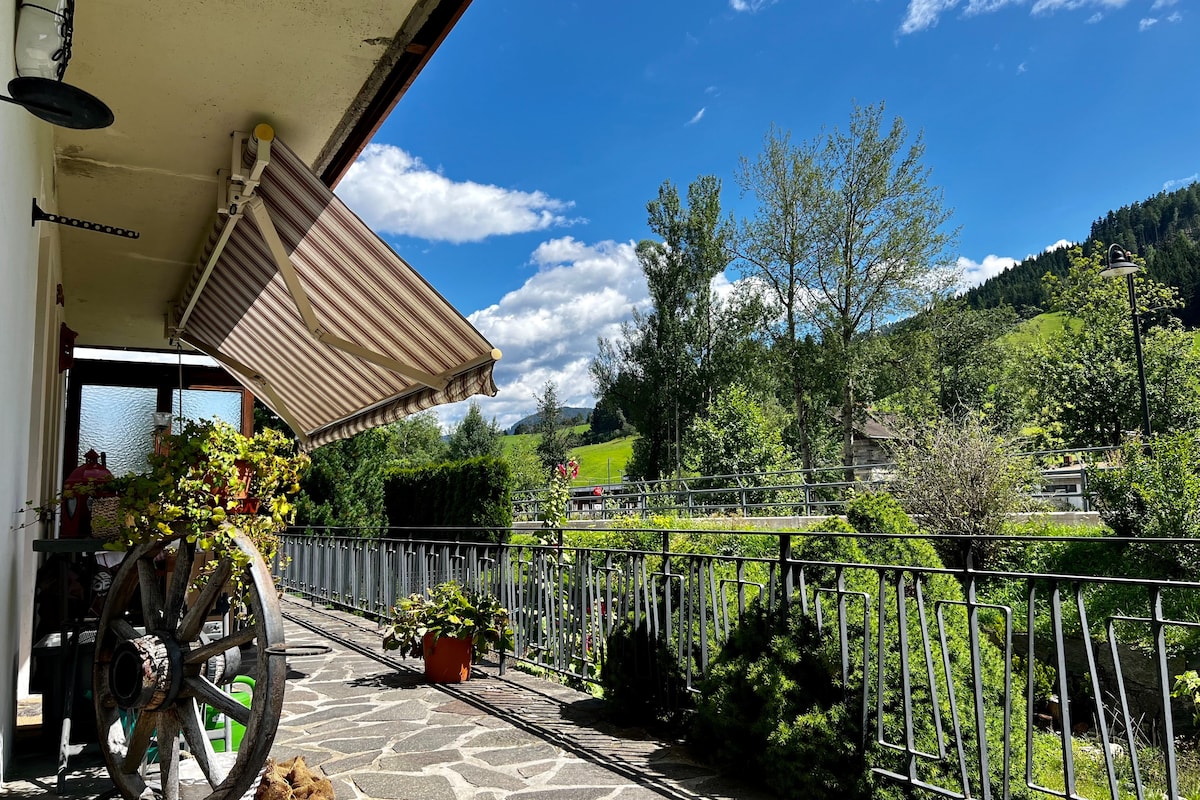 Attic apartment almost entirely covered with antique wood and traditionally furnished, equipped with a living area with a large sofa bed and smart TV, dining table, kitchen equipped with all the main appliances including oven and dishwasher. The apartment's strengths are the spacious east-facing balcony overlooking Santa Maddalena, to enjoy the morning sun in front of a nice breakfast, and the brand new private sauna in pine wood.