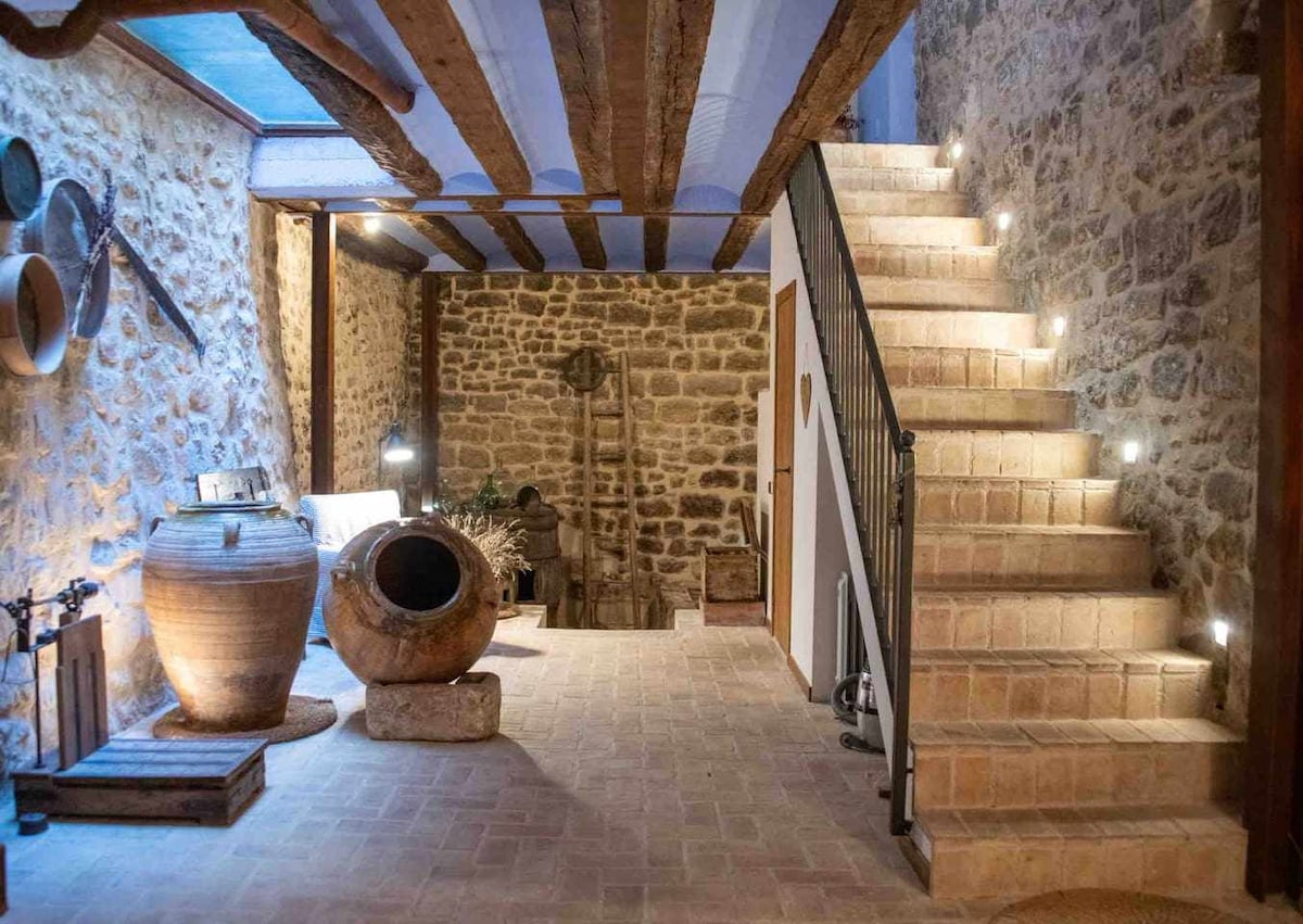 El Mas Àuria is a small, newly restored farmhouse, located on the slopes of Montaspre (Sierra de Cardó), totally isolated and with excellent panoramic views of the Macizo dels Ports and the Ebro Delta. It is an idyllic place to relax and enjoy long sunset walks through the immense estate of ancient olive trees. El Mas de Àuria is an eco-sustainable farmhouse with exquisite rustic decor and spaces designed to feel comfortable and relax for unforgettable days. It has a private pool.