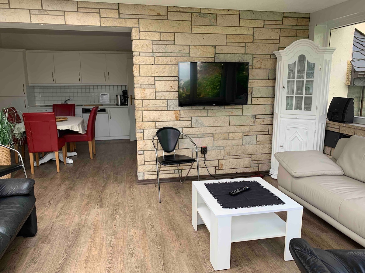 This cozy place will have a great time. The apartment is 65 square meters with its own entrance. It accommodates two people in the bedroom and another person on the sofa bed in the living room. The location is close to the Ruhrtalradweg and within walking distance of the historic old town of Arnsberg. You can end the day comfortably on the spacious terrace with a south-facing location.