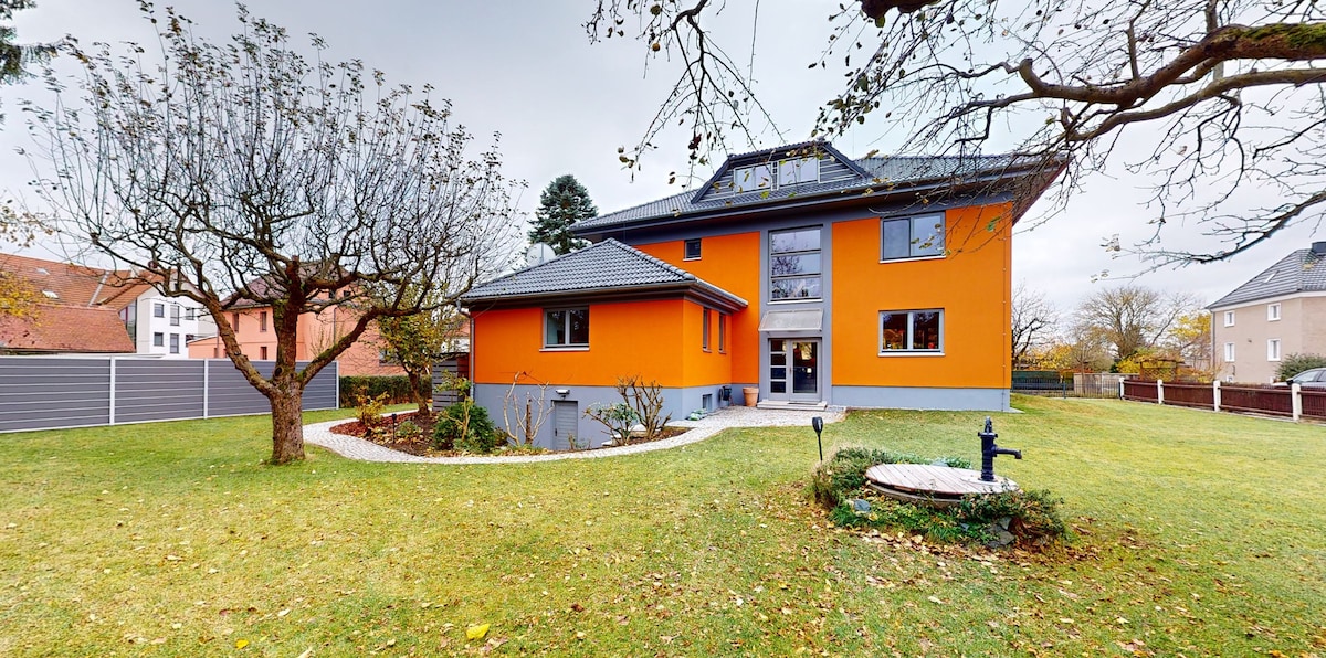 Forget everyday life and worries – in this spacious and quiet accommodation. Edge of the field, birdsong, balcony, vegetable garden... Colorful, airy, sparingly furnished with real Swedish wood... Sunny attic apartment in a detached house... There is always a free parking space in front of the door... 15 km to Dresden through the heath by bike, by public transport in 30 minutes... Ideal starting point for tourist and sports activities in Elbflorenz, South Brandenburg, East Saxony, Meißener Land...
