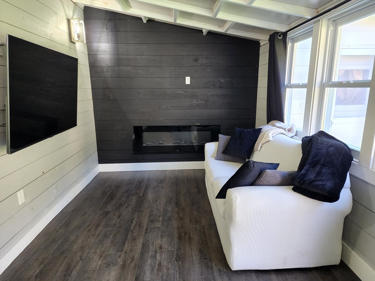 Kick back and relax in this calm, stylish space. The dining table accommodates 6 and 4 additional seats can be found at the kitchen island. Farm-style bathrooms feature luxury towels and amenities. High-efficiency washer and dryer. 1 Queen bed, 3 full beds, and a full sleeper sofa. Attached garage. Dedicated office space located in a sunroom with high-speed internet for the professionals out there. Keypad door entrance allows for a seamless check-in. And, yes, there is a coffee maker!