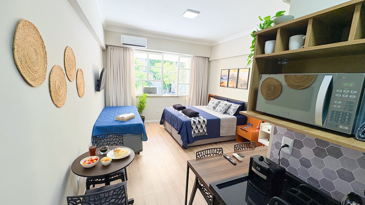 Take a look on this sophisticated aparthotel, designed to offer even more comfort, style and the unique experience of living like a authentic 'Carioca' (those who was born in Rio). Enjoy all the facilities around staying close to the best restaurants, bars, shoppings and local commerce and the amazing green view from the balcony. 24/7 reception desk and daily cleaning. Don't forget to see my reputation (host since 2012 and +450 comments).