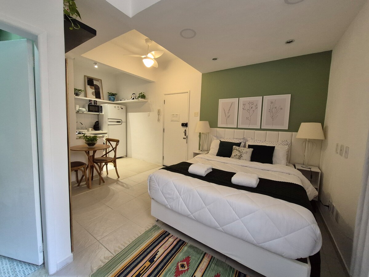 Modern and cozy studio between Copacabana, Arpoador and Ipanema, a few steps from the beach and the subway. Ideal for couples or business travelers looking for comfort, practicality and a great location. Enjoy activities such as Hawaiian Canoe, Kayak, Standup Paddle or bike ride. Walking: 4 minutes from Fort de Copacabana 6 minutes from Arpoador Beach 6 minutes from Ipanema Beach 10 minutes from Ipanema/General Osório subway station 4 minutes from Zona Sul supermarket