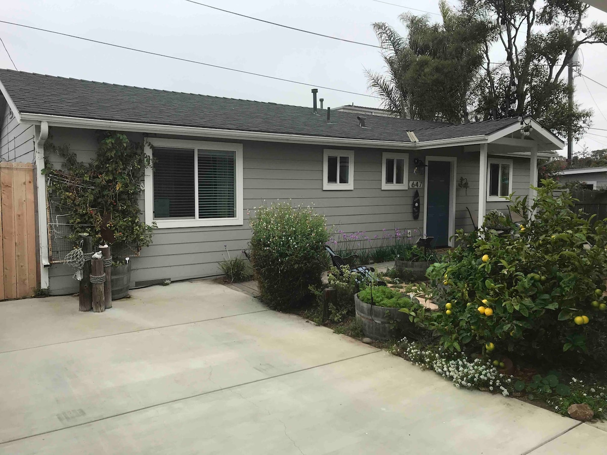 Our picturesque guest house sits 30 feet from the main house, in our serene back yard. With your own private porch with a cozy fire pit! Located in a quiet family neighborhood. 2.1 miles from the beach 2 miles from Amtrak 1.3 miles from the charming village of Arroyo Grande. 15 miles to San Luis Obispo. Check in 4pm check out 11 am. We are always happy to honer an early check in or out if we have time and schedule.