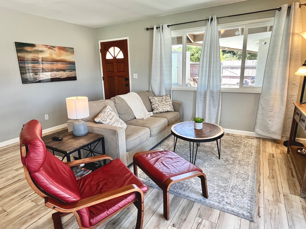 Come stay, come play, come work. Stylish modern one bedroom flat w/ comfy king size bed and queen-size sofa sleeper. Light, bright living space, lots of windows and very spacious . Our guest house is in the heart of Arroyo Grande and next door to everything. So if you are on a family vacation, business trip or couples retreat; experience the central coast, relax in a beautiful home, enjoy outdoor patio, with w/ fire-pit and barbecue for outdoor fun. Simple & Upscale (845 Sq Ft)