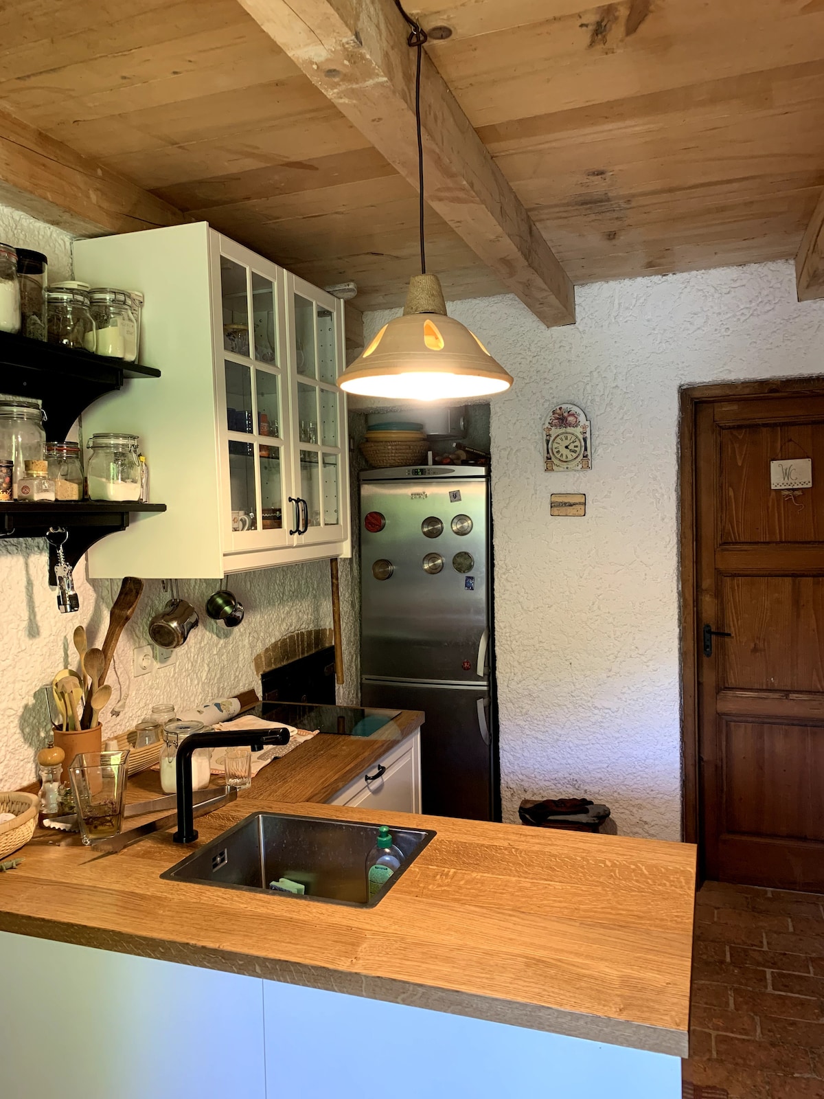 Bobnarjev hram – Vacation among vineyards Welcome to Bobnarjev hram, a spacious country house surrounded by vineyards, orchards and beautiful nature, offering stunning views of the Šentrupert Valley. The house accommodates up to 8 guests, making it ideal for families, friends or small groups looking for privacy and contact with nature. The interior is decorated in a traditional rustic style and includes 4 bedrooms, 2 bathrooms, a kitchen and a large living room with tiled stove.