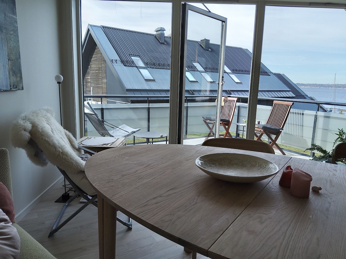 Enjoy luxury and nature with your loved one(s). SPA, exercise, pool and gym. Private sunny, screened balcony. Modern well-equipped kitchen. Nice, sunny common areas outside and inside; Small sandy beach, jetties, patios. See Holtnes resort for restaurant and Spa opening hours. General 18-year limit on SPA/pool. Separate times for children that can be agreed with the resort when you arrive. Welcome!