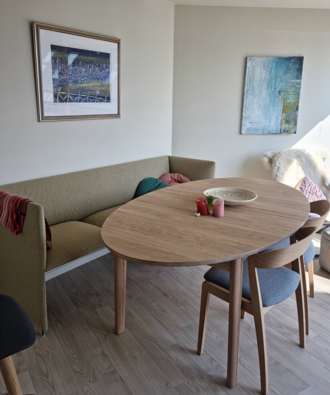 The house is charmingly decorated from the 70s. It has been inhabited by women, so the style is wallpaper and flowers. In the kitchen there is everything both of service and cooking equipment. The cabin has a very nice room for long meals both outside and inside. For those who need a home office, you can sit in 3 areas with both space and work peace. In connection with Christmas, we can facilitate decoration and ordering of Christmas food.
