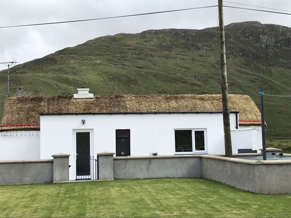This tastefully restored formed Sheep Farmer's cottage is ideal base for your visit to Donegal. Located on the Wild Atlantic Way just outside the village of Kilcar with Sleive League to the West and Killybegs and Donegal town to the south. This is an ideal place to settle into for a night or two and return to each evening after visiting the beautiful Donegal countryside. There are wonderful views from the cottage of Sleive League (Sliabh Liag) beyond.