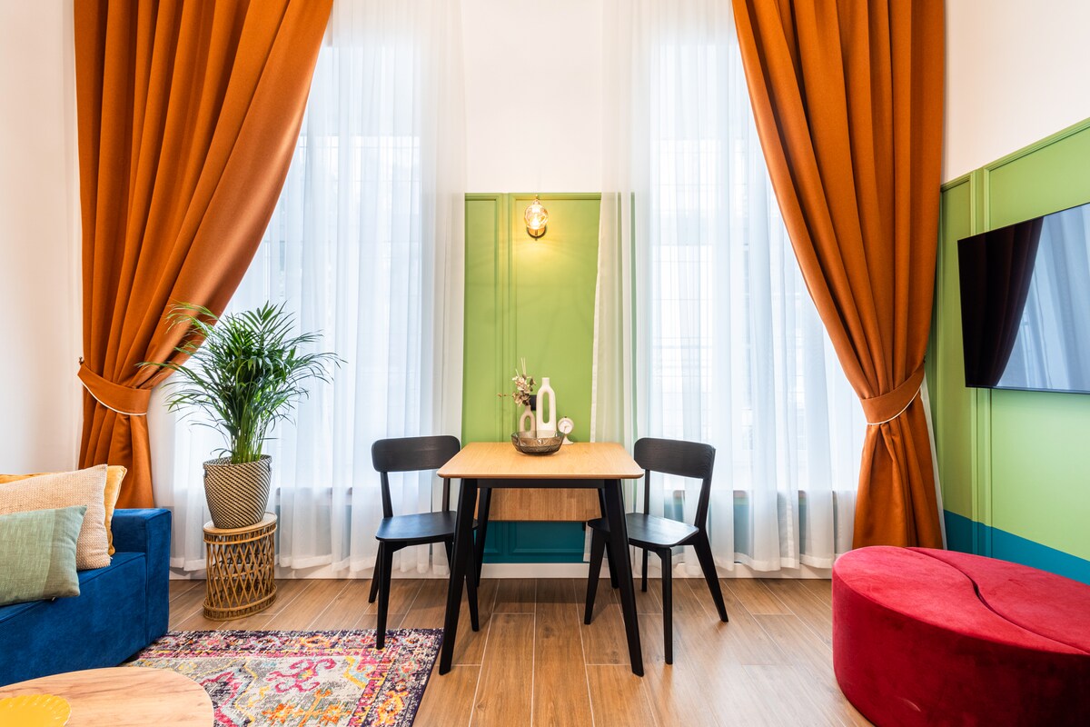 Luxurious newly renovated apartment located in the heart of downtown Budapest suitable for couples or a family of 4 ( 2 adults +2 children). Fully equipped, the hot tub is the highlight of the space and a perfect place to relax after a long day. Everything you want to see is easily accessible either by foot or by the subway located 1 minute from the door. The airport shuttle arrives and departs from outside the building
