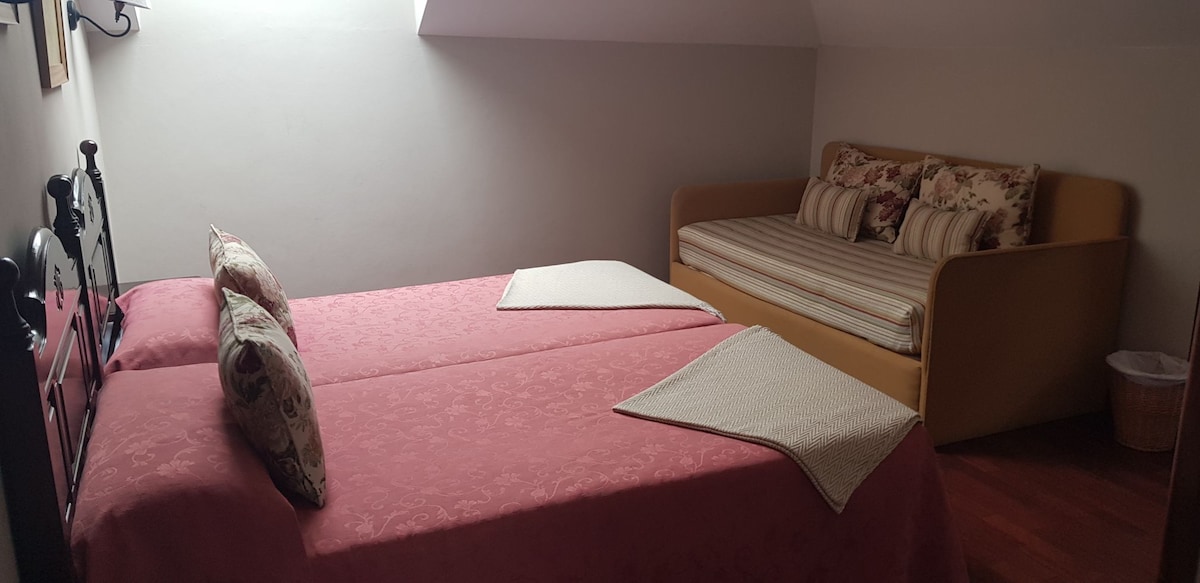 An ensuite room for 3 people with beautiful views of the Picos de Europa and the tiny village. 10 minutes’ drive from Cangas de Onís, 40 minutes’ drive from the sea. Our guests enjoy hiking and exploring & birdwatching. Numero de registro: ESFCTU00003300400077401300000000000000000000VV487ASO