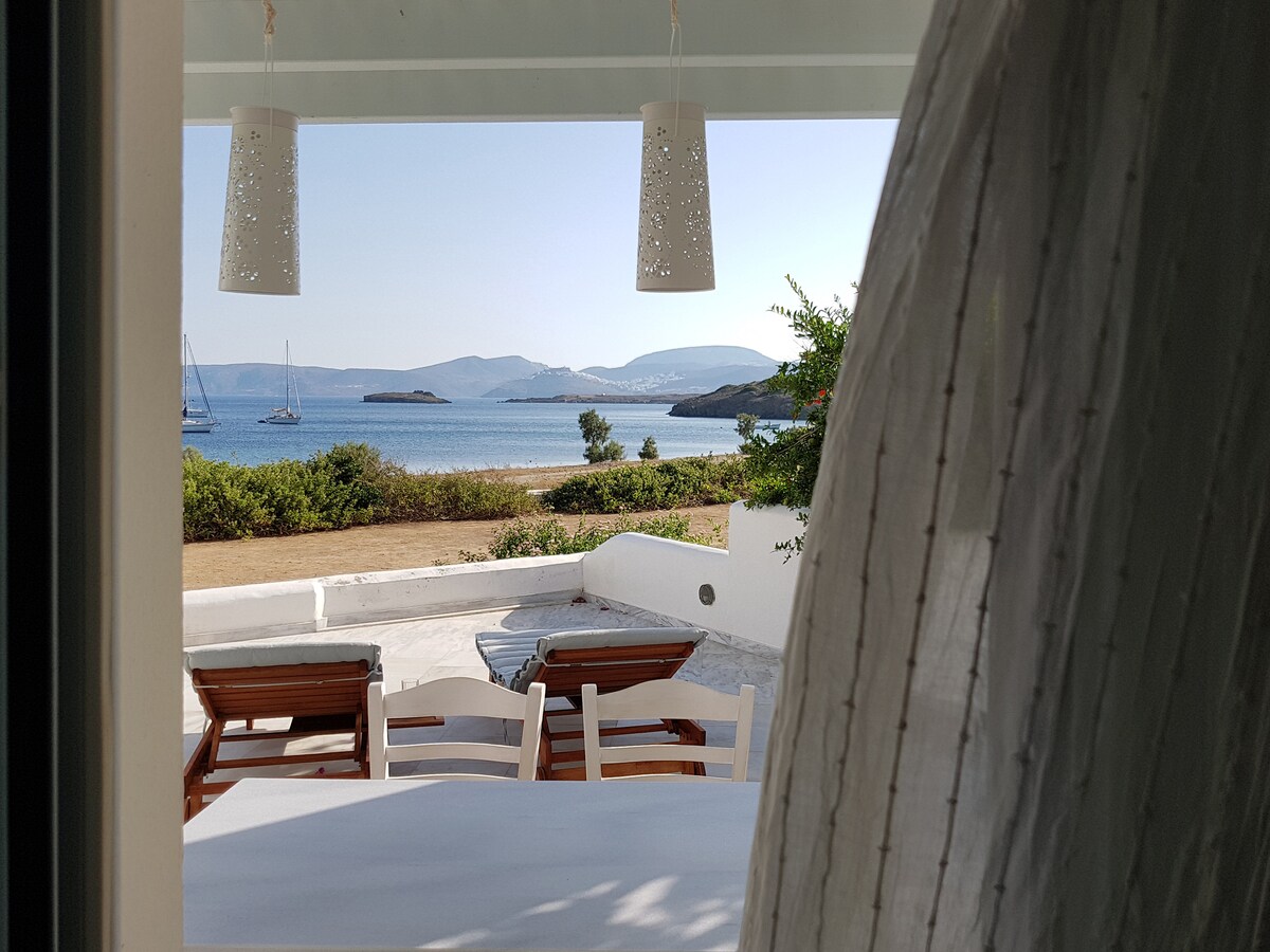 My place is located on the hill of Schoinondas beach, 40 meters from the sea. It offers spectacular 360° views. Supermarket, bars, restaurants and buses are within walking distance. The airport is about a kilometer away. At the marina of Matezana you can watch the gulets return and buy freshly caught fish. The most beautiful beaches of the island, including the renowned Blu Limanaki, are minutes away on foot. The main village, Chora, is about 9 km away.