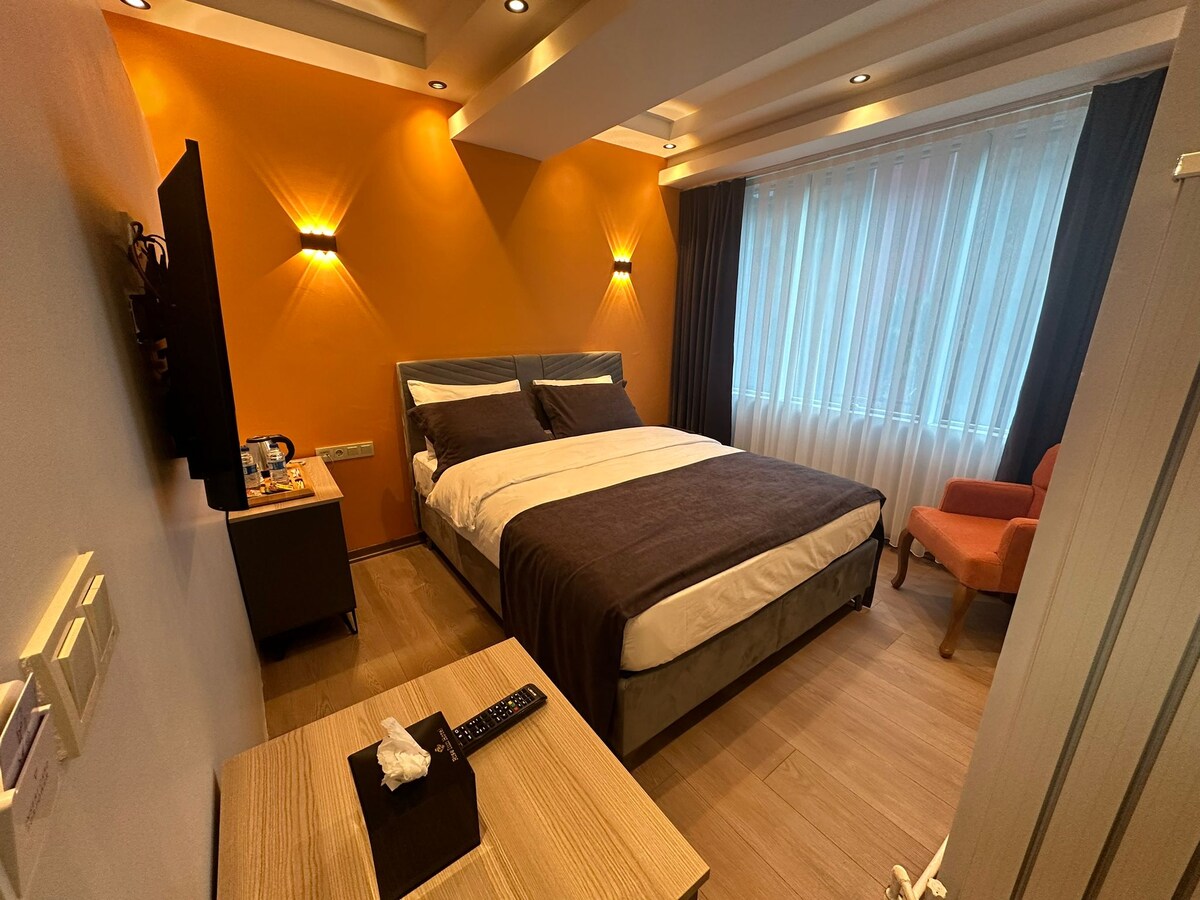 Designed with elegant details, our Premium Studio room combines modern elegance with high-level comfort. Our meticulously renovated room offers an exclusive accommodation experience with its spacious and sophisticated decoration. Thanks to its high-speed Wi-Fi, air conditioning and carefully selected comfortable bed, it promises a privileged stay for its guests with its calm, peaceful and warm atmosphere while making you feel at home.