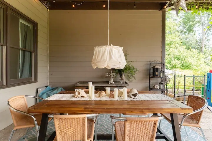 A gorgeously restored 3 bedroom/1 bath mid-century brick home in the perfect location. Meet our rescued alpacas & llamas at the gate. Beyond the back gate is reserved for treehouse guests & their privacy. Tropical garden views, hear roosters crow on our working rescue farm! Granite kitchen, open floor plan, amazing location, designer/antiques, b&w bath, amazing beds/linens, thoughtful touches await you. On weekends, we offer reduced rate llama alpaca experience tours for $35 per person.