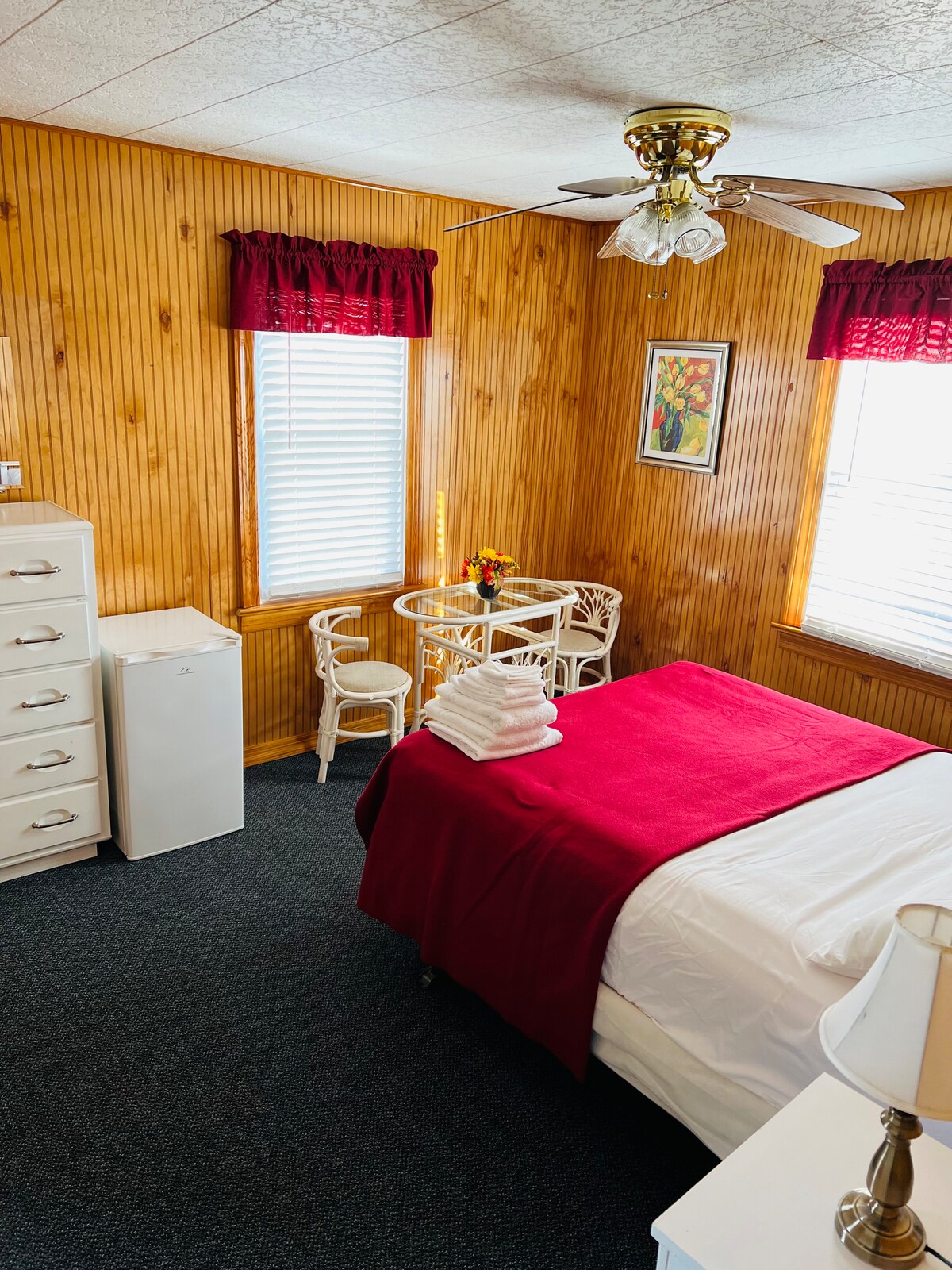 1 King Size Bed 1 Queen Size Pullout Sofa Bed Room accommodates up to 4 people!! Cleaning fee credit/debit card deposit $50 required!! It is returned to you within 2-3 business days after checkout. All dishes must be washed before leaving the room for checkout. Enjoy easy access to popular shops and restaurants from this charming place to stay. Restaurant and amenities on site! Kitchenette and balcony in the room.
