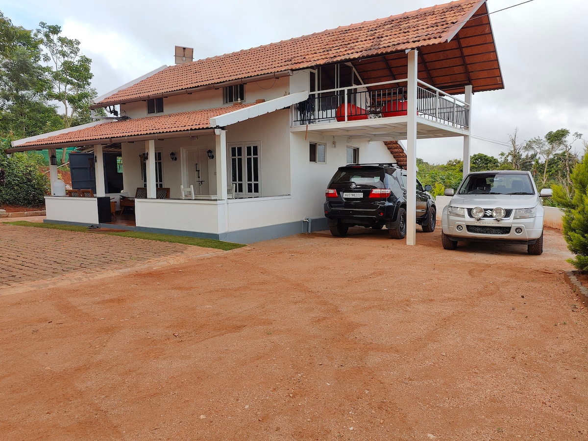 Veg Only 🍃 Welcome to our cozy farm stay nestled amidst a lush coffee plantation in the Western Ghats of Karnataka. Our farmhouse offers a rustic and authentic experience, surrounded by rolling hills. Our farm stay features two bedrooms, a living room, and a kitchen. Guests can wake up to the sound of birds singing and enjoy a cup of locally grown coffee. During your stay you can visit nearby places, or simply relax and rejuvenate in the peaceful coffee estate surroundings.