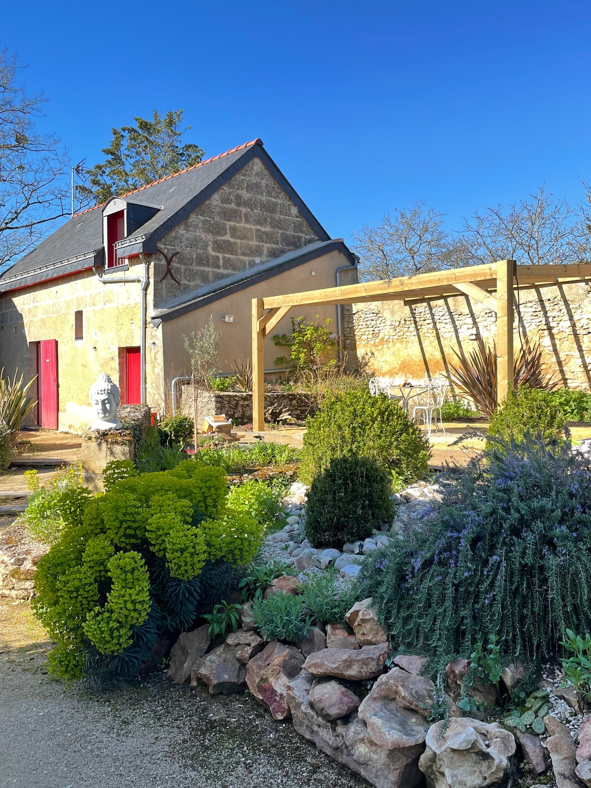 You'll love my place because of the location and the ambiance. It is an old house made of tuffeau stone located in the heart of a troglodyte courtyard. The gîte has a fitted and very well-equipped kitchen but also an outdoor courtyard with terrace (barbecue, garden furniture). My place is good for couples, solo travelers, business travelers, families (with kids), and furry friends.