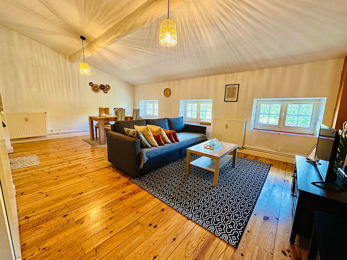 Gite Classe 4* , Furniturede tourisme 2023. 75m2 accommodation in an 18th century building, totally independent, completely renovated, completely renovated, perfectly maintained. You will stay in the center of Mirepoix close to all shops, in the heart of the entertainment, and you will enjoy the serenity of a terrace and a swimming pool. This cottage offers you astay in complete autonomy. Peace, comfort, independence, in the heart of the medieval city. Free secure garage nearby.