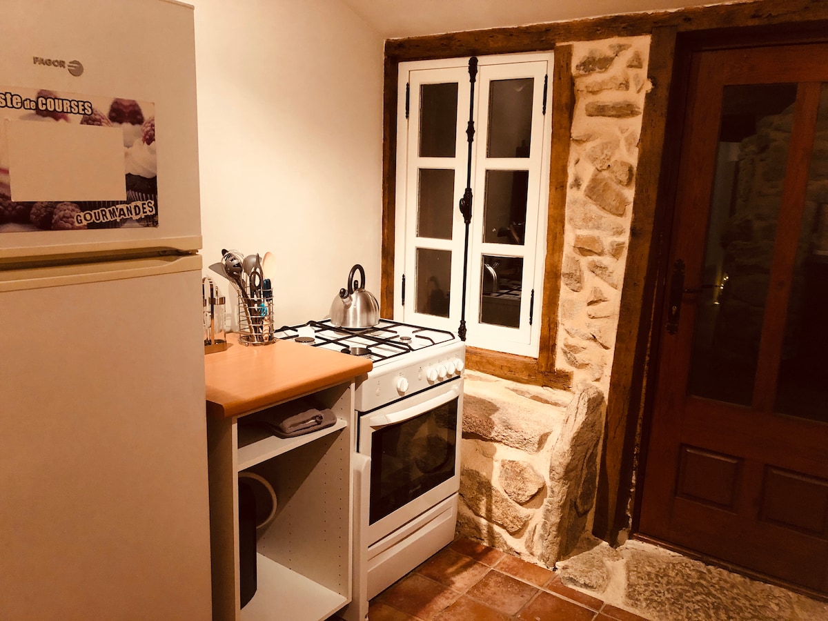 This old outbuilding is located in a very small hamlet, between meadows and forests, where it is nice to live and very quiet. Renovated in a clean and thoughtful style so you can feel like you're in a cozy, cozy little nest. On the terrace or in the shade of the maple tree, admire the vast expanse that opens onto the Puy-de-la-Roche, changing in different shades according to the hours and seasons. Nature dominates and invites you to slow down, to contemplate, to settle down.