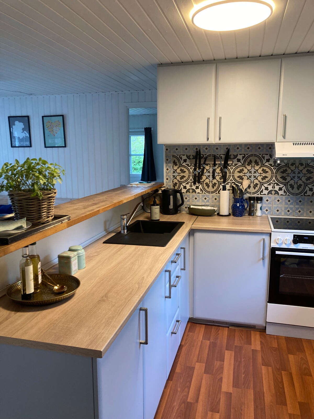 Staying in our 75 square meter vacation apartment gives our guests a very special sense of vacation. When you open doors and windows, the sounds of the forest, the garden and the sea birds flow in. A scent of fresh sea air meets your nostrils. Our guests also experience the light as something very special. Especially when the evening sun sends its rays down on the surrounding islands, you have to pinch yourself to make sure you're not dreaming.