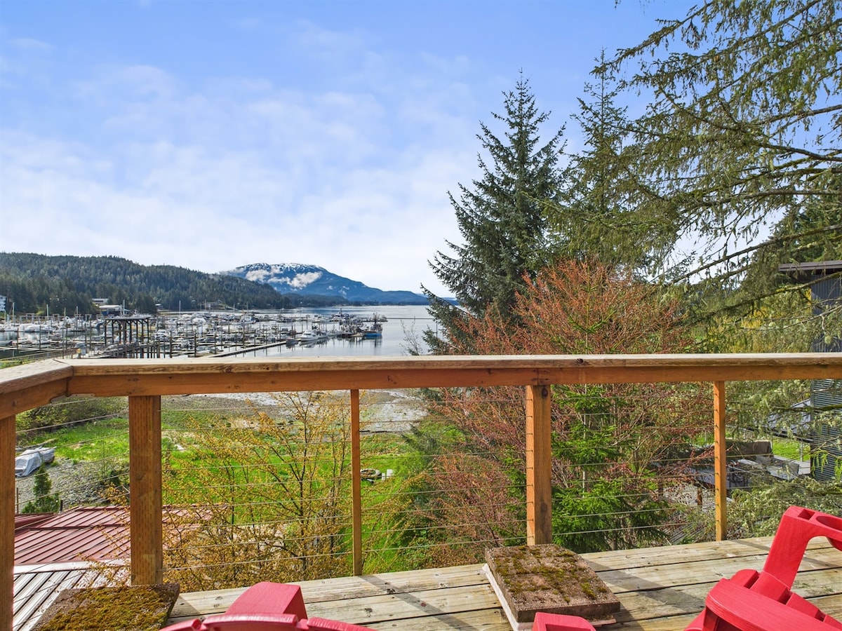 With stunning views of the Pacific Ocean, Auke Bay Harbor and the Chilkat Mountain Range from nearly every room, our open-concept living area with a wall of windows will take your breath away. Relax in the master suite's jetted tub while taking in the harbor view. In-floor radiant heat and on-demand hot water will keep you cozy during cool Alaska nights. This private 2nd and 3rd floor unit, with its own entrance and deck, is the perfect basecamp for your Alaskan adventure.