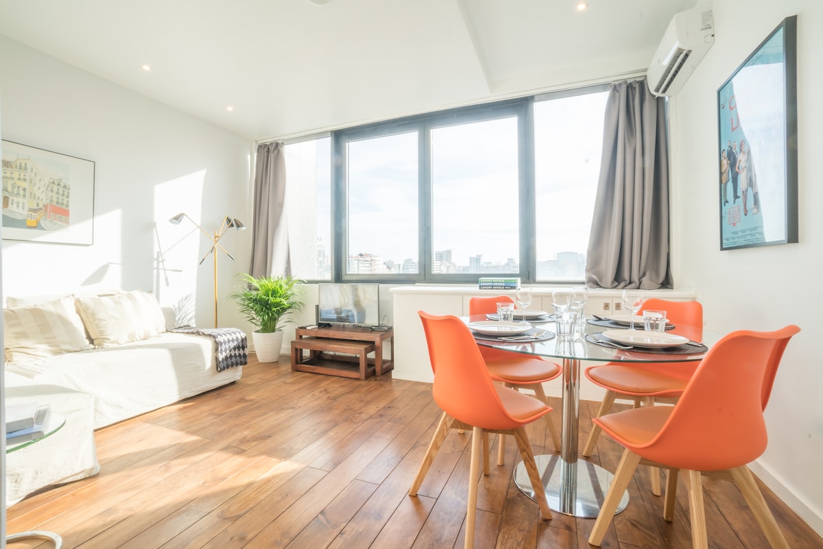 A stylish 1-bedroom rooftop apartment with a private terrace and stunning views of the Sao Jorge Castle and Tagus river. Located in the heart of Lisbon, in Marques de Pombal close to the emblematic Eduardo VII park and Avenida da Liberdade. ⚠️PLEASE NOTE there is construction work next door and may be noisy during the day** The rooftop apartment is accessible via an outdoor spiral staircase. Due to the stairs, please note that this apartment is not suitable for people with reduced mobility.
