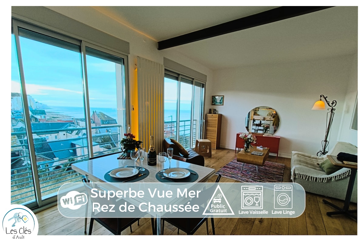 Appartement entièrement équipé, situé au 1er étage d'une jolie villa surplombant la mer... vous offrira un spectacle de couleurs à toute heure du séjour mais aussi de la chambre. Dépaysement assuré!!!Idéalement situé entre Mers-Le Tréport et Saint Valéry- Le Crotoy, il vous permettra de découvrir notre magnifique région pleine de nature et de saveurs. C'est l'endroit rêvé pour vous détendre en famille ou amis.