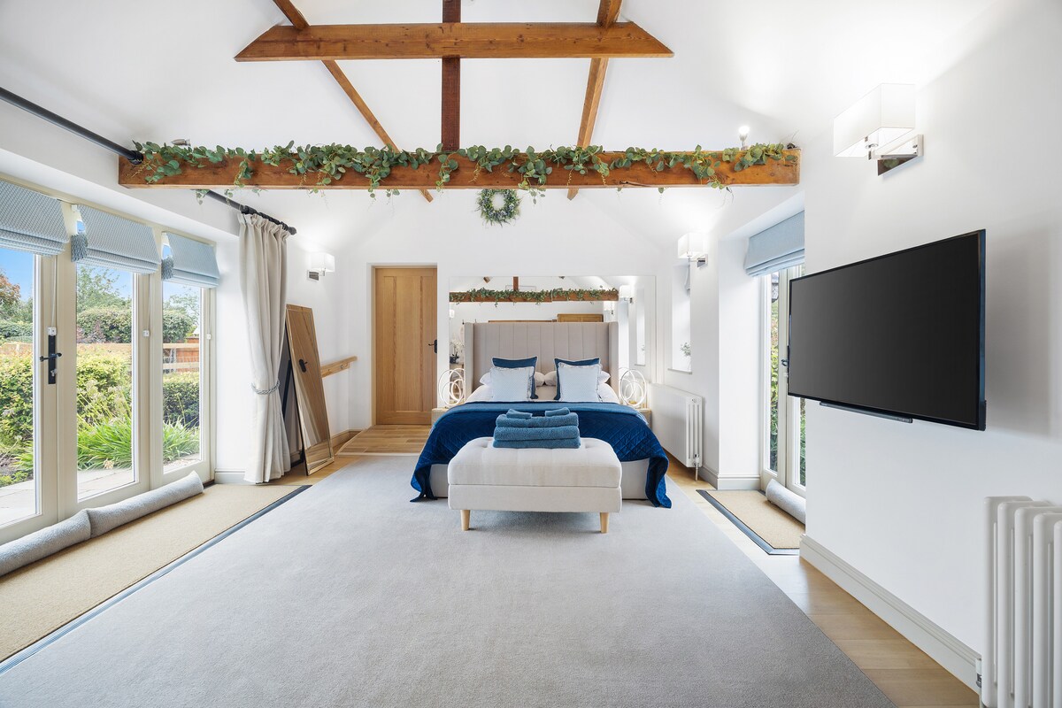 Enjoy the Annexe, as part of the house in a relaxing country setting. Along with a comfortable King size bed and large en-suite shower room and wc. There is a high spec kitchen/dining room, a beamed lounge with smart TVs and great views. Own front porch access and downstairs wc. Shared central staircase with the owners. Large gardens, with own patio and comfortable outdoor seating area. Buffet breakfast foods. Own Parking. Great walks and cycle routes, A1 & M1 nearby.