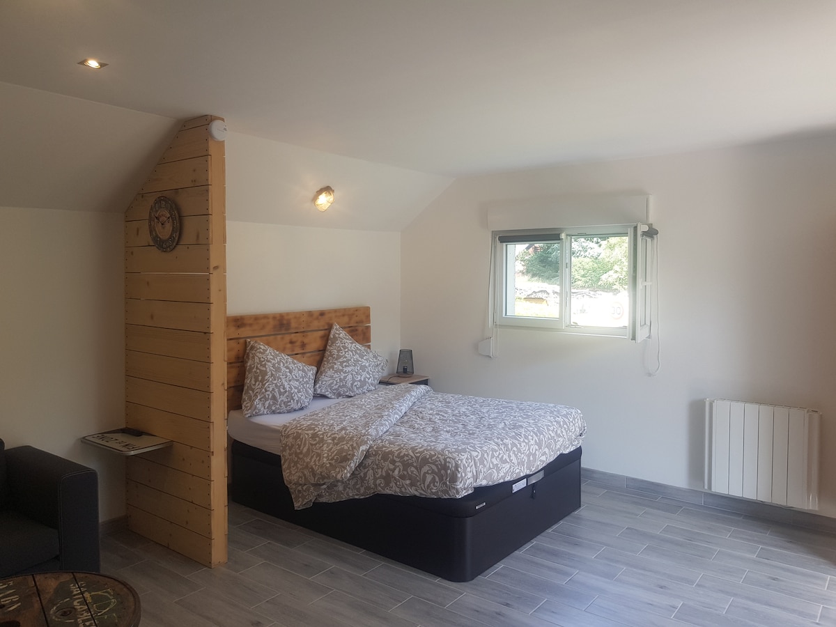 New 45 m2 cocooning cottage with sauna and private 3-star gym and 3-star gîte de France, ideal for two people, (independent entrance and access not overlooked) with a breathtaking panoramic view from your private terrace over the Cleurie valley and the village of Tholy. Located at an altitude of 700 m in a very quiet site on the heights of Tholy, in the heart of the Hautes Vosges. Close to the forest, many hiking trails and mountain bike trails.