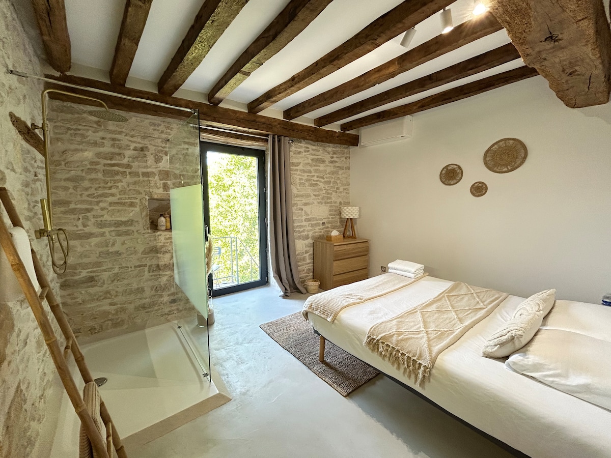 “L'Escapade de Pommard” is a fully renovated apartment, nestled in the heart of the famous wine village of Pommard. It offers a warm atmosphere, combining modern comfort with traditional Burgundian charm. It consists of a spacious bedroom, a fully equipped kitchen and a contemporary bathroom. This cozy and bright space located on the ground floor with a separate entrance is ideal for a getaway in the prestigious vineyards of the Côte-d'Or.