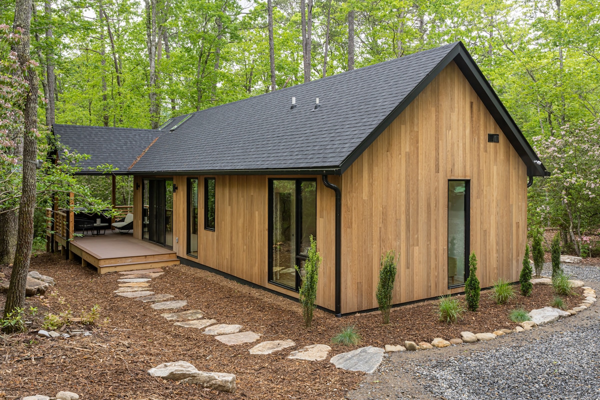Kick back and relax in this calm, stylish space. This newly constructed, Scandinavian inspired home makes you feel like you've gotten away from it all, while only being 12 minutes from downtown Asheville. Relax in the hot tub on the deck surround by the mountain laurel canopy, snuggle up by the fireplace and watch a movie, or just bathe in the forest through the floor to ceiling windows while you take your coffee in bed.