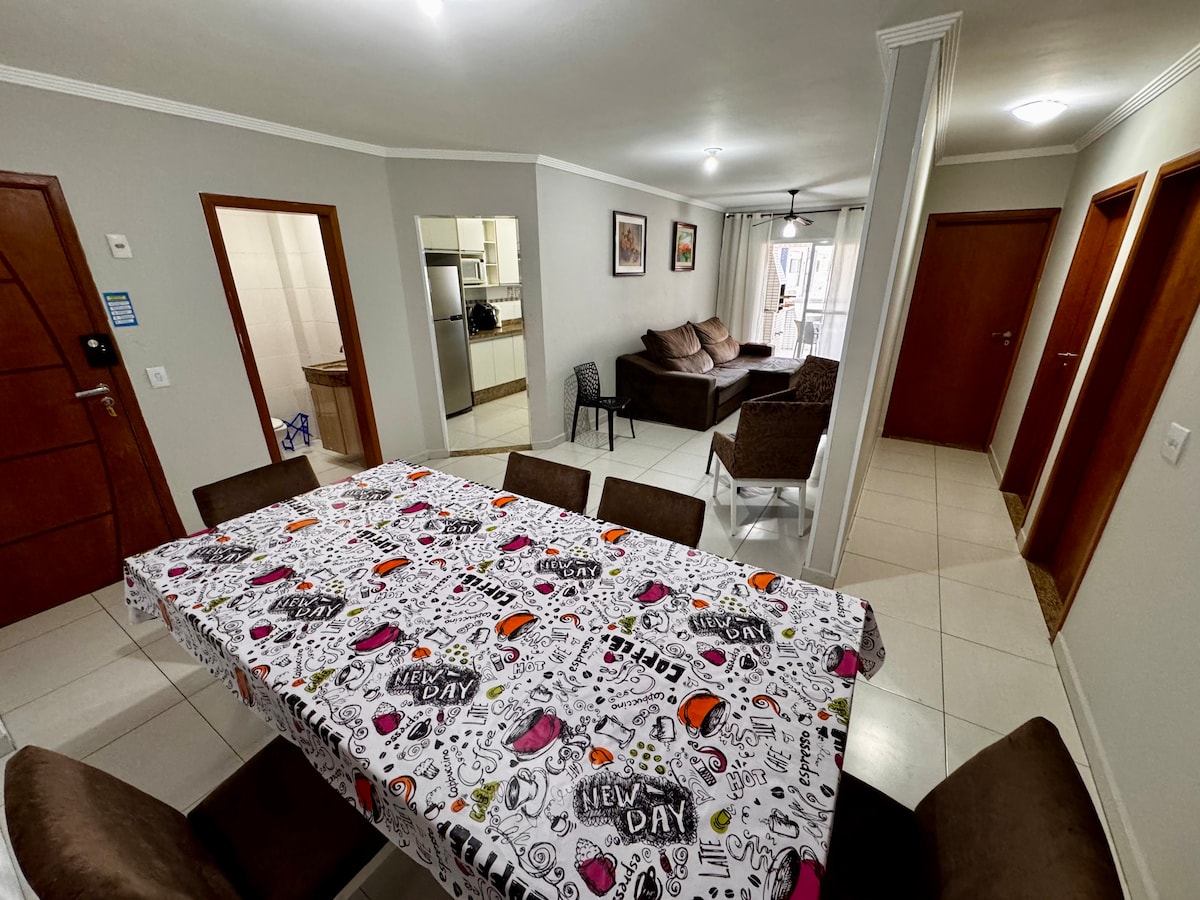 Privileged location, 250 meters from Aviação beach. New, clean, and thoughtfully designed apartment to welcome you! In addition, all essential and tourist services, such as the market, pharmacies, bars, restaurants, bakeries, are just a step away. We will be happy to welcome you and your family! WE OFFER: BALCONY WITH ELECTRIC BARBECUE, 2 GARAGE SPOTS, 2 ELEVATORS, 2 BEDROOMS WITH SCREEN PROTECTION AND FANS, LAUNDRY, LIVING ROOM, FULL KITCHEN AND 2 BATHROOMS (ONE EN-SUITE).