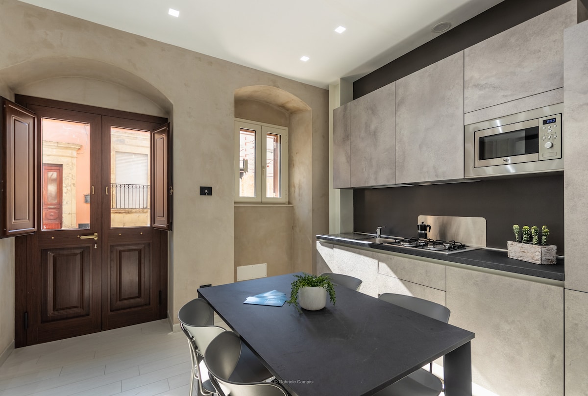 Elegant and quiet in the heart of Noto, CASÌ is the perfect retreat for two. Carefully designed, natural materials and modern comforts in an intimate and relaxing atmosphere. Comfortable double bed, equipped kitchen, bathroom with large shower, fast Wi-Fi and air conditioning. A few steps from the Duomo, in a quiet location: the ideal starting point to experience Noto and relax. Free parking is available in Via Venti Settembre, Via Antonio Sofia and Largo Nazario Sauro, about 30 meters away.