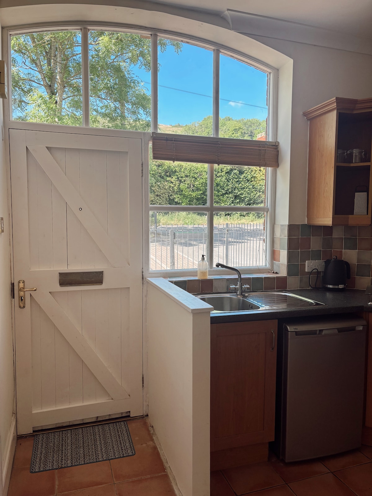 Wendale Barn is a beautifully renovated, compact, detached building, the perfect place to relax on the edge of Cheddar. With private patio, decking and stunning views of the reservoir and Glastonbury Tor. Private, romantic, the ideal getaway, with double bed upstairs and sofa-bed in the living room; although it is open plan, so the shared space isn’t private. Access is via a run of steps up the hillside, some garden terraces are up to 1.1m high, without guardrails and there is a shallow pond.