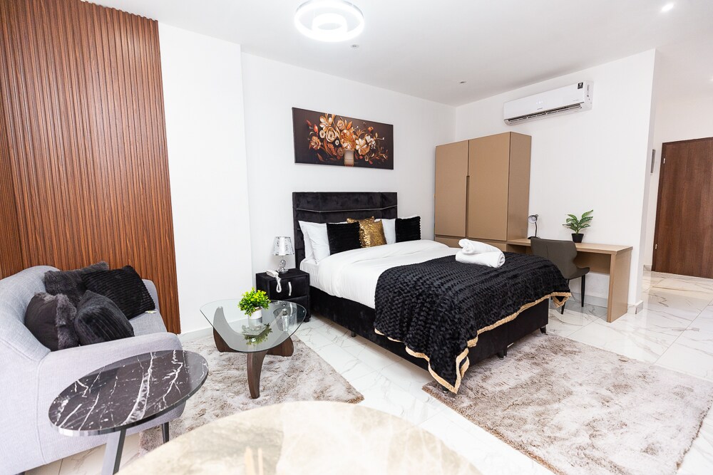 Welcome to your sophisticated urban retreat, a luxury studio apartment designed for comfort, convenience, and style. Located close to the kotoka international Airport , this stunning space offers top-tier amenities and a prime location, making it perfect for both business and leisure travelers