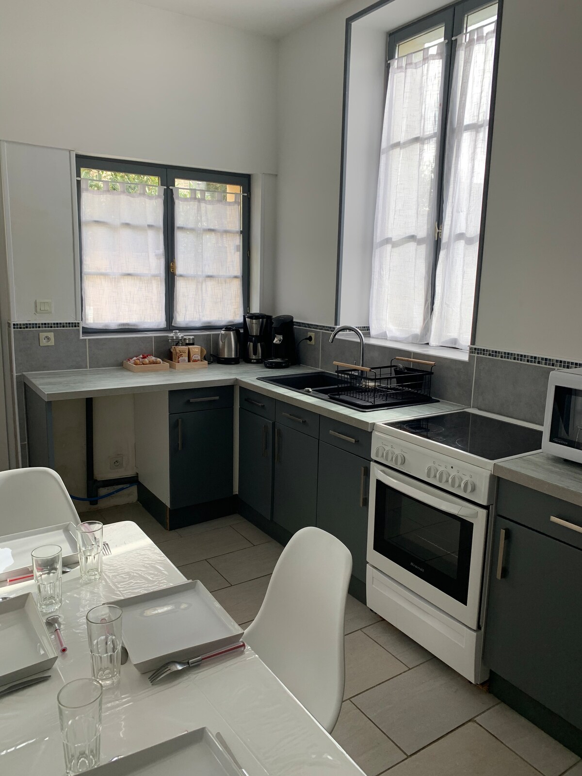 We welcome you to a fully renovated old farm, in a green and quiet setting. The accommodation includes three modern and bright bedrooms, with two bathrooms and toilet, and a living room with fully equipped kitchen. On site, you can discover a large natural garden, with flowers and vegetables in abundance, as well as chickens, ducks and sheep! Many activities await you nearby, as well as all shops and services 3 km away.