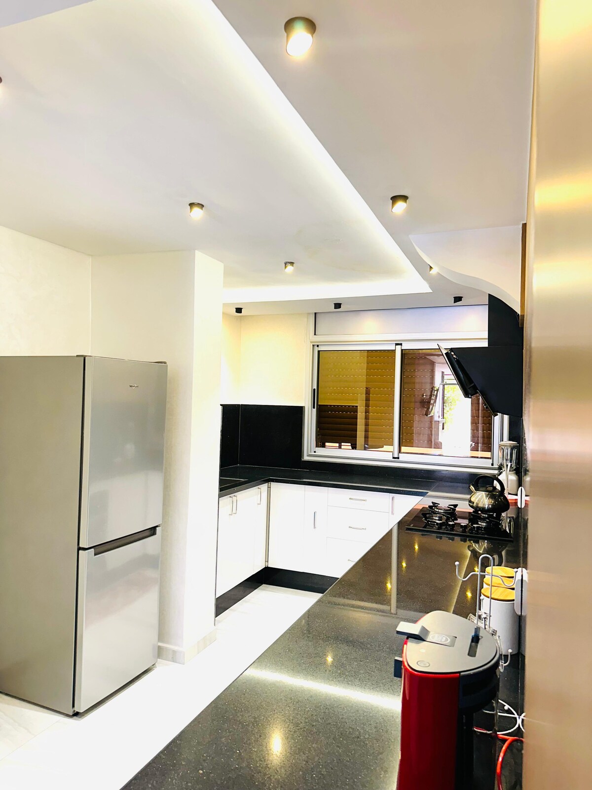 Elegant and spacious apartment in Béni Mellal, conveniently located in a safe and quiet neighborhood. This 100 m² accommodation includes 2 bedrooms, 2 modern bathrooms, a fully equipped kitchen and a large living room with TV and fiber optic Wi-Fi. Close to the Carrefour and the road to Marrakech, you can enjoy tranquility while having easy access to local amenities. Perfect for a pleasant and comfortable stay.