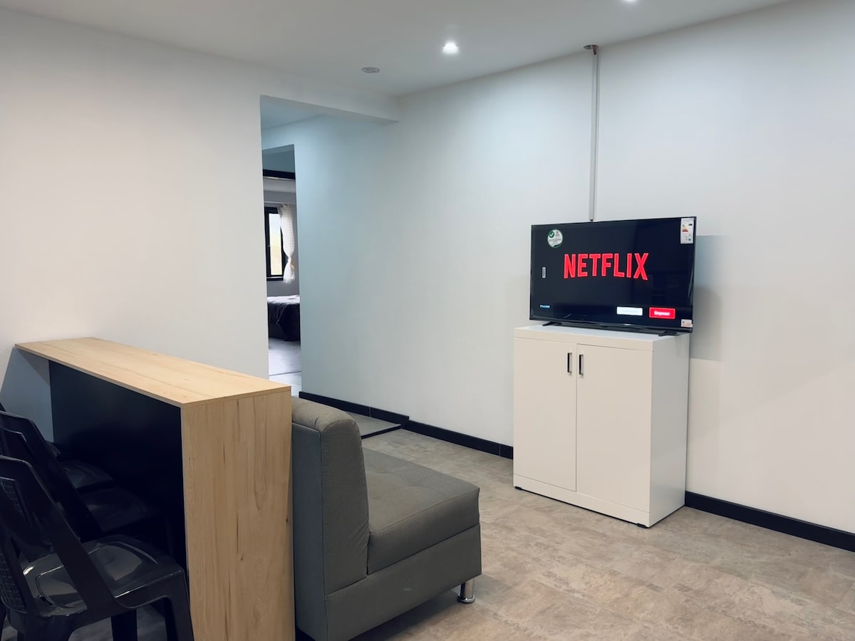 🌟 Welcome to our exclusive Suite in a private gated community! Cozy studio of 25 m² with a double bed, sofa bed, bathroom, kitchen, and Starlink WiFi. Enjoy: Fully furnished and functional space Terrace and garden to relax Smart TV with Netflix, laundry, and free parking Ideal location near historic center, bus station, tram, and shops 🐾 One pet up to 20 kg allowed (no exotic animals).