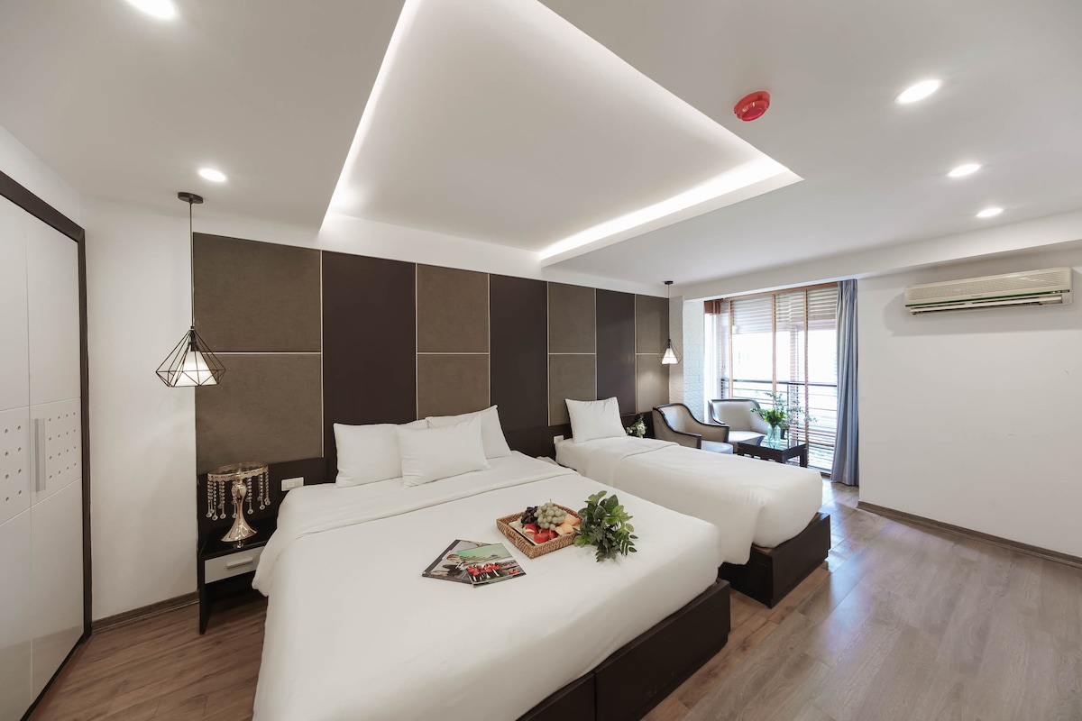 Located in the ancient Gem Island - the heart of Truc Bach lake which connected to West Lake & Hong river, we’re gifted with fresh air and free from traffic noise. We’re just 1.5 kms meters to the Old Quarter, 1.5kms to the Ho Chi Minh memorial, 700m from the famous French colonial architecture, and just 800m from the famous Hanoi Ceramic Mosaic Mural. You can easily access local lively markets and more. The building offers a 360 rooftop view of Hanoi, especially Old Quarter and gorgeous nature