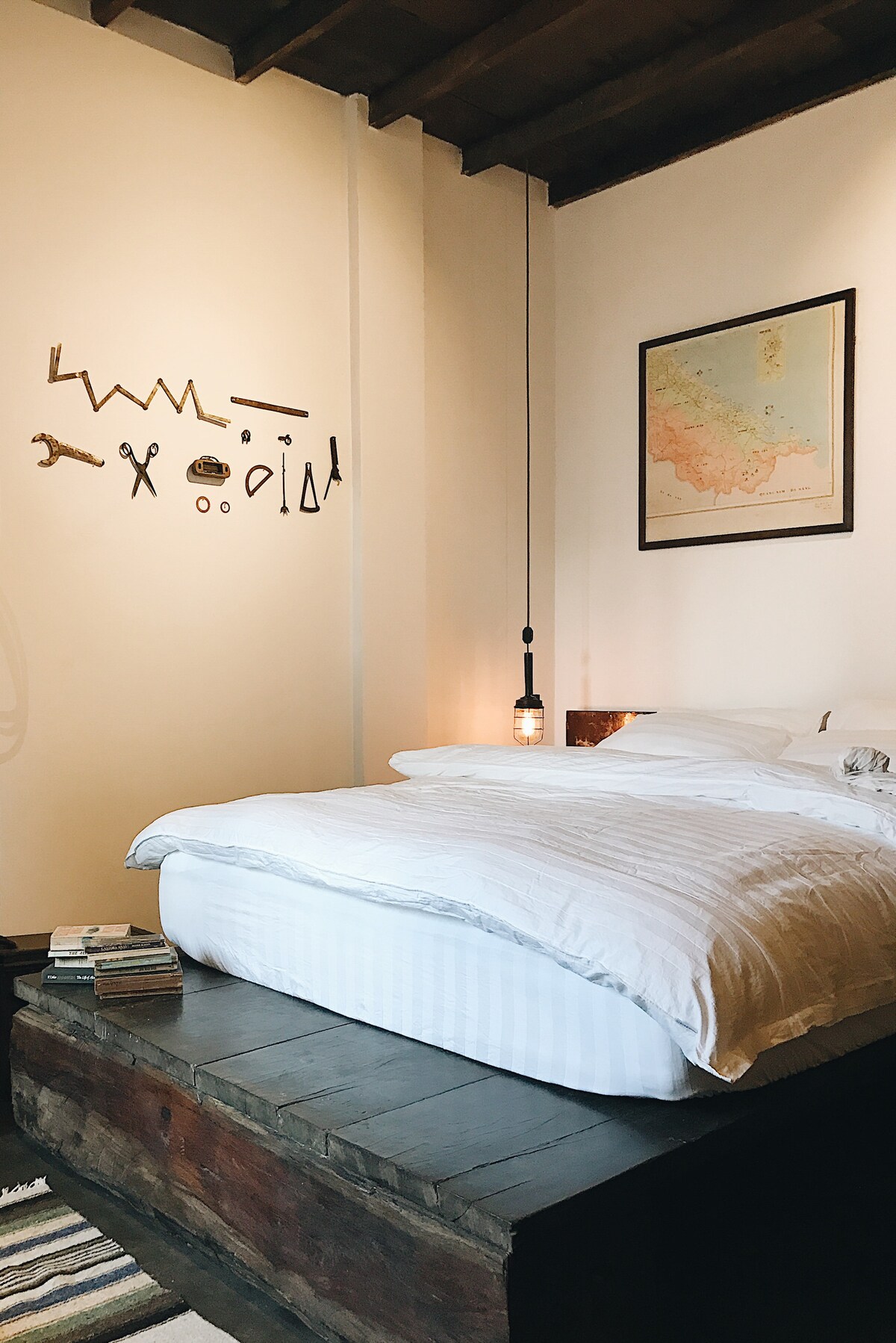 The LOFT is located in downtown central Saigon on famous Pasteur street. (3rd floor ) The design is comprised of natural artefacts featuring wood log beams brought in from the central provinces of Vietnam; all this high quality furniture was handmade from pure copper, steel and wood materials. Several cactus plants and succulents bring a fresh, green and eco-friendly feeling to the place. It all comes together to create the feeling of a cozy, loft apartment.