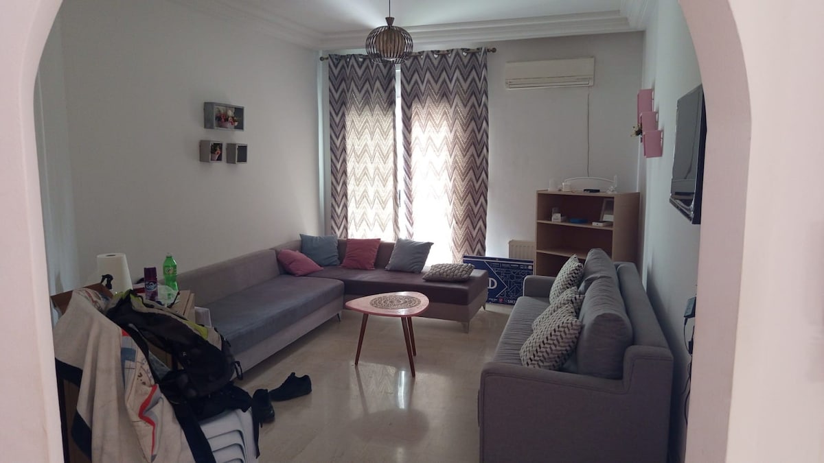 Welcome to your stylish and spacious apartment in the heart of Tunis. Thoughtfully decorated and fully equipped, this urban retreat offers modern comfort just steps from shops, cafes, and cultural spots. Whether you’re here for work or leisure, enjoy a peaceful stay with everything you need — fast Wi-Fi, a comfy bed, a full kitchen, and plenty of natural light.
